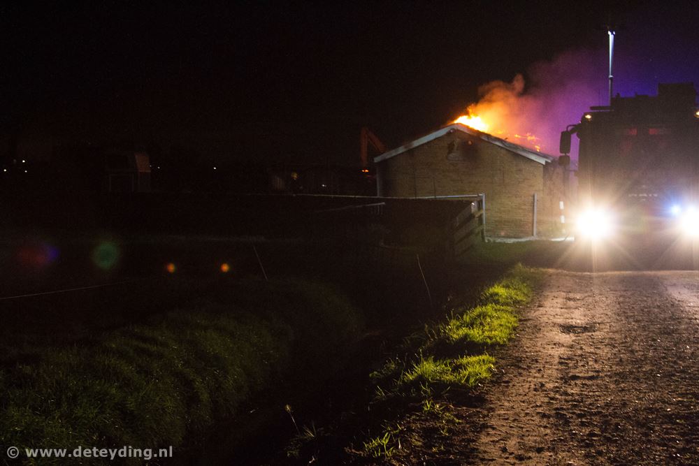 De vlammen sloegen bij aankomst van de brandweer uit het dak. Bij de brand is asbest vrijgekomen.De 2e Elsgeesterweg is een zijweg van de Leidsevaart die uitkomt bij volkstuinen “De Elsgeest” en rijvereniging De Voorruiters. De Leidsevaart was tot 20:00 uur afgesloten tussen de A44 en de Nagelbrug.