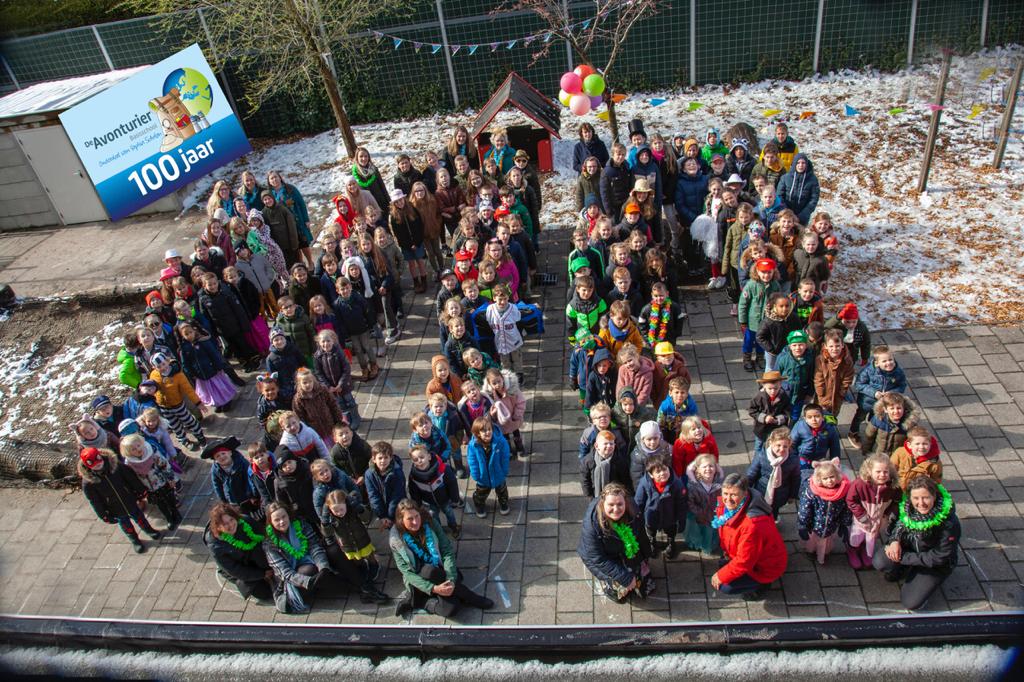 De Avonturier, vroeger De Antonius, vond het 100-jarig bestaan reden voor een heerlijk feest met muziek door Kleintje Pils, het begraven van een tijdscapsule, taart, het spelen van oud-Hollandse spelletjes, een workshop drummen met je lijf voor de leerlingen en het maken van een speciale foto met de hele school. Vanwege het feest hadden alle kinderen zich verkleed. Naast deze feestelijke dag komt er nog een feestweek en een reünie in juni.