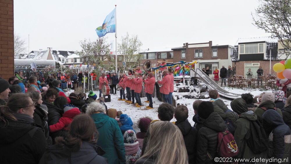 VOORHOUT, 2 april 2022 – Gisteren was het feest op basisschool De Avonturier aan de Jacoba van Beierenweg. Al 100 jaar lang verzorgt deze school en haar voorgangers basisonderwijs voor de Voorhoutse jeugd. Burgemeester Breuer opende de feestdag en hees samen met kinderen een speciale vlag in top. Beeldmateriaal Keijzer en PR Avonturier