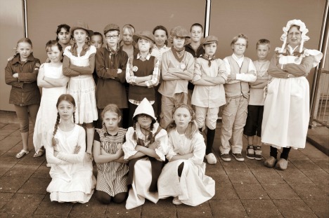 Op dinsdag waande je je terug in de tijd. Het klompengekletter, aap-noot-mies teksten, altijd-is-kortjakje-ziek melodieën, ulevellen en de oorvijgen waren weer terug op de school. Samen met Marleen van Leeuwen heeft de hele school het toneelstuk “ Jarig Jetje” voor de ouders, oma’s, opa’s, vrienden en bekenden opgevoerd in de sporthal ‘de Tulp’. Heel knap en leuk zoals alle 240 leerlingen een aandeel hadden in dit stuk!