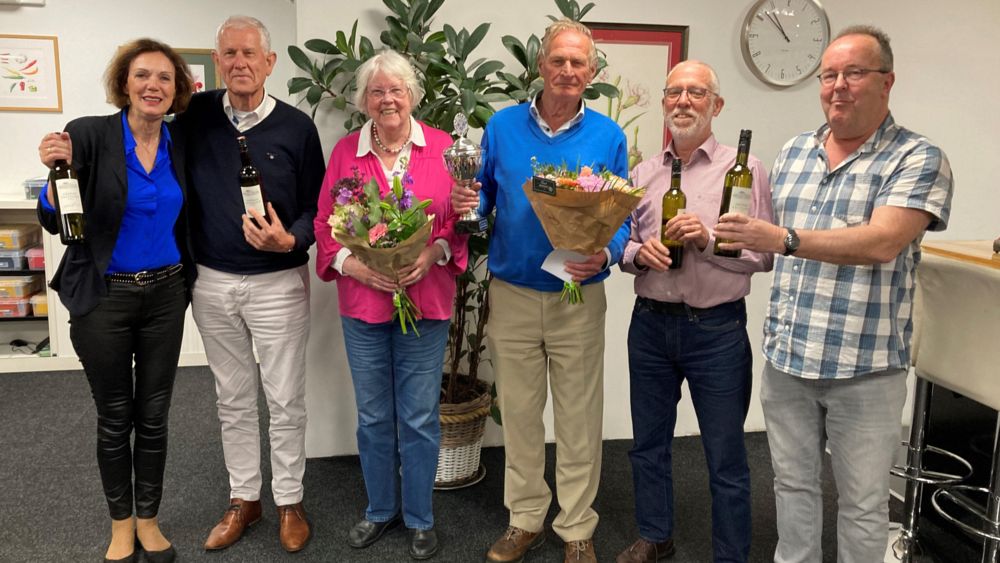 SASSENHEIM, 18 mei 2023 – Gisteravond zijn de clubkampioenen van Bridgeclub Voorhout bekend geworden en gehuldigd. Er waren drie prijzen voor zowel degenen die op maandagavond als op woensdagavond spelen. Foto’s Bridgeclub Voorhout