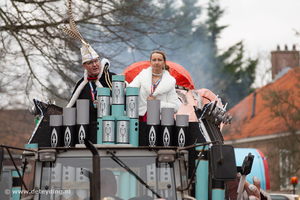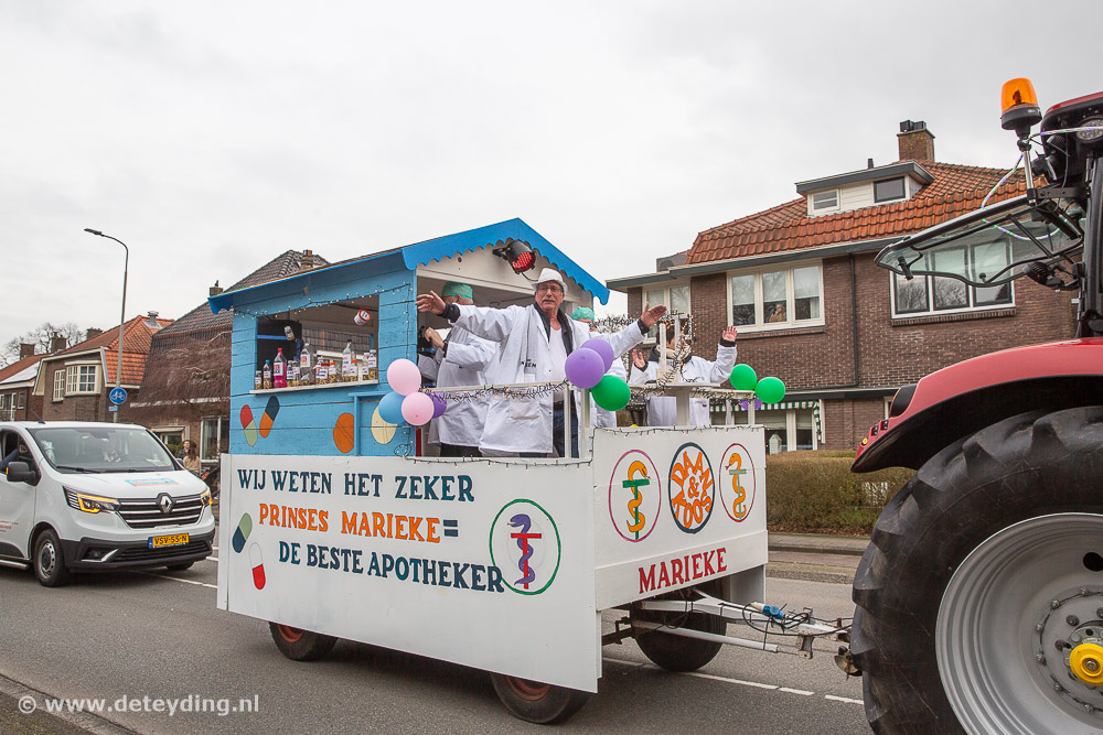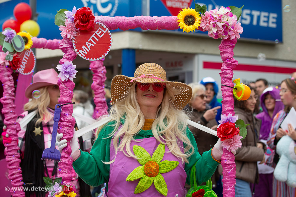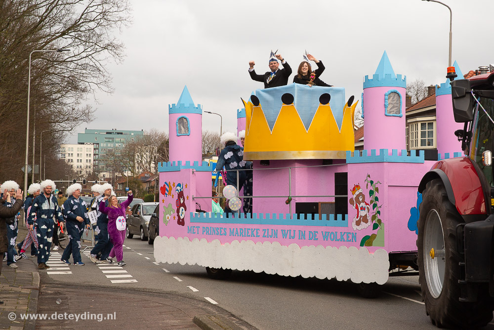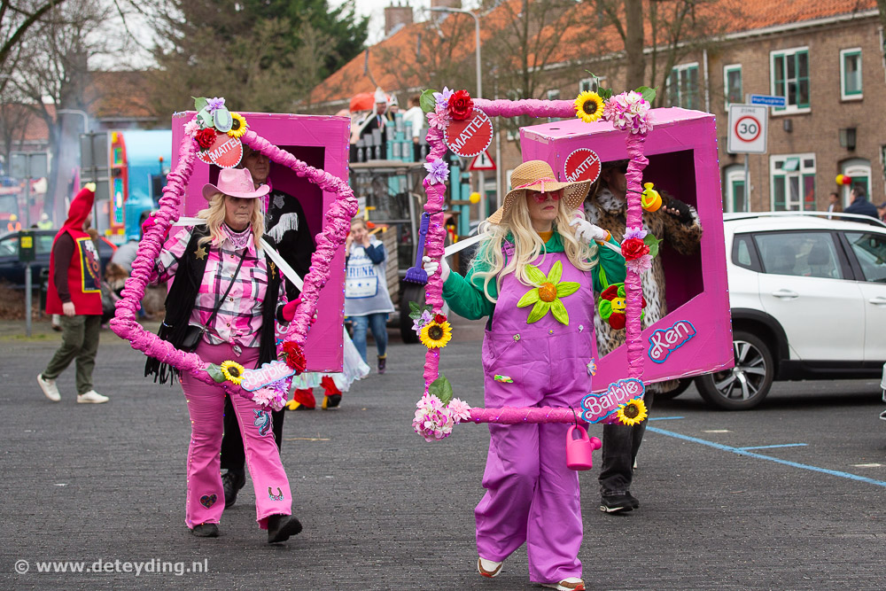 SASSENHEIM, 10 februari 2024 – In Sassenheim reden zaterdag samen met de carnavalswagens van De Saksen ook De Gaapstokken (Lisse), Carnavalsvereniging Hillegom, De Plasduikers (Ter Aar) en De Noortukkers (Noordwijk) mee. De wagen van Prinses Marieke en adjudanten Koos en Daan van De Saksen was niet te missen: Zij reden in een roze kasteel al bellenblazend vanaf ’t Onderdak naar de Hoofdstraat. Foto’s Edwin van der Wijngaard.