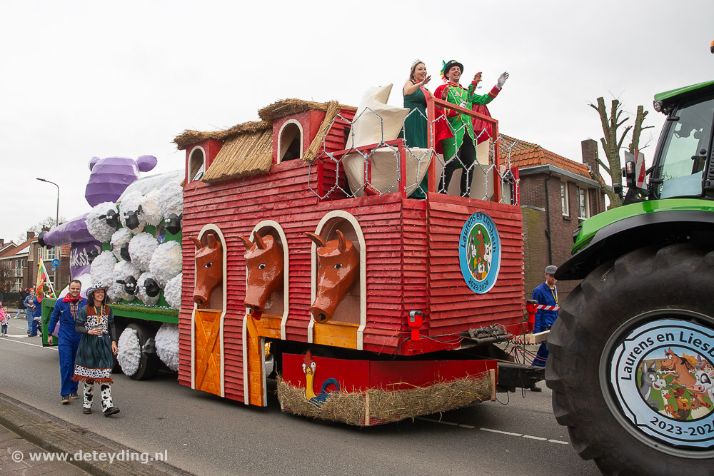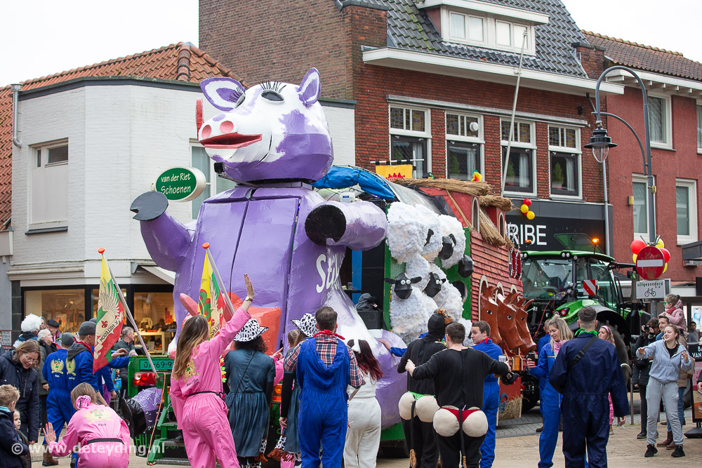 De carnavalswagen ‘Stikstof’ (een stal met koeien en schapen en achterop een enorme paarse koe) van Carnavalsvereniging Hillegom ging zaterdag met de eerste prijs naar huis.