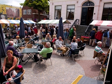 Halverwege de middag klom oud-wethouder John van der Velde op een stoel om de nieuwe expositie "Treasurelab" in het Kunstcafé de Galerie te openen. In het kunstcafé zijn tot begin september litho's, schilderijen, beelden, tassen, sieraden en keramiek te zien van Gert Strengholt, Lon Buttstedt, Marianne Aulman, Caroline van Rhijn en Fenna Akerboom.