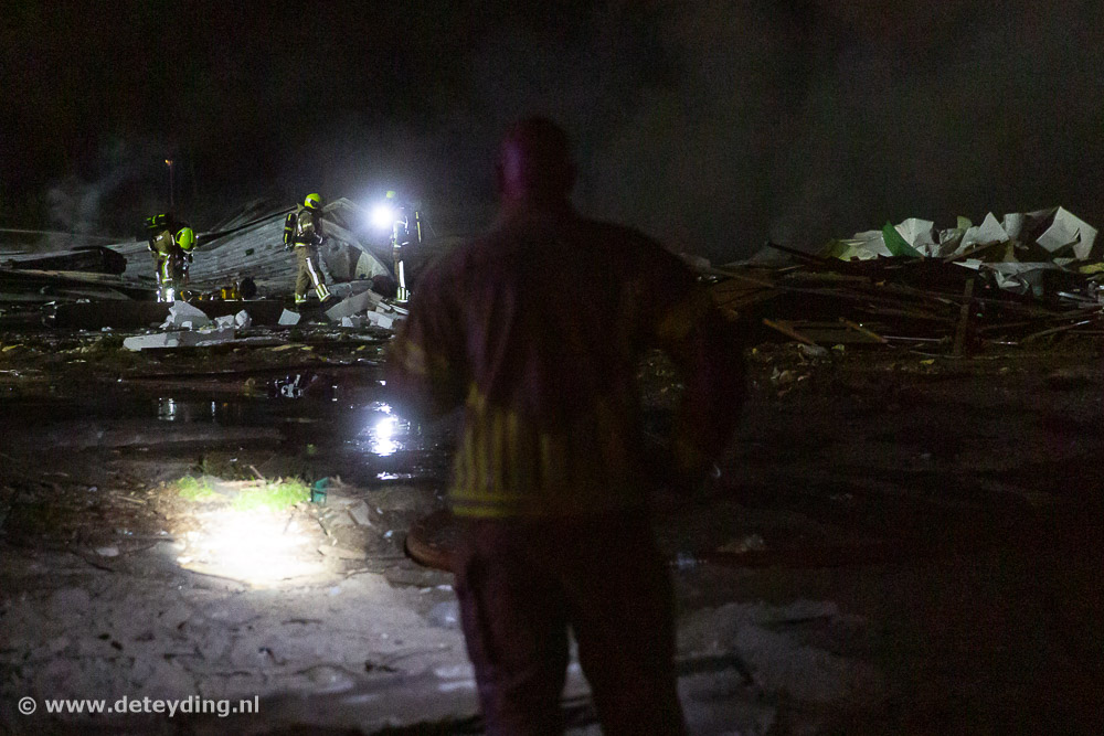 Volgens de brandweer zijn er geen gewonden en is de oorzaak van de brand nog onbekend. Van de gebouwen op het terrein was al 80% gesloopt. Er was volgens de brandweer ook geen asbest meer aanwezig. De brandweer heeft meteen groot opgeschaald omdat de rook richting de locatie van AkzoNobel aan de overkant van de Rijksstraatweg ging. Er werd ook gemonitord of de rook een gevaar voor de omgeving vormde. Rond 01:15 uur gaf de brandweer het sein Brandmeester. Het nablussen van de hopen sloopafval zal nog wel een tijdje duren.