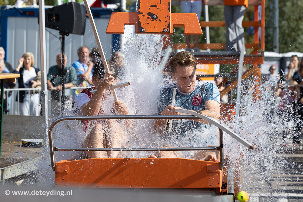Na veel regen was het vrijdag zonnig weer voor één van de hoogtepunten van de najaarsfeesten in Sassenheim. Burgemeester Carla Breuer stak een ring toen zij het tobbetje steken opende. Daarna haalden vele deelnemers een nat pak bij een mislukte poging om de twee ringen onder te tobbe te steken.
