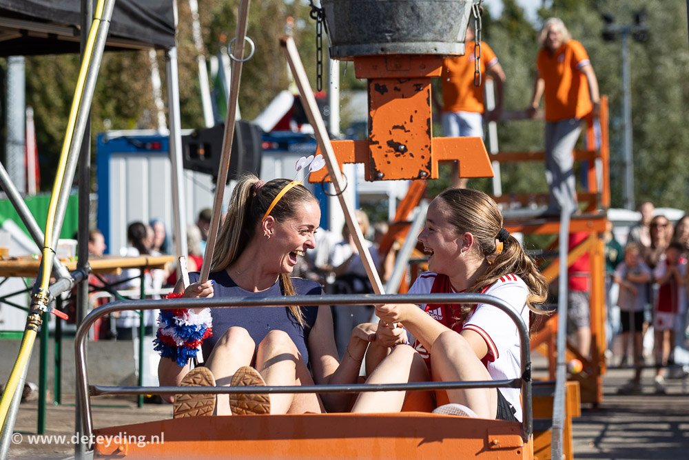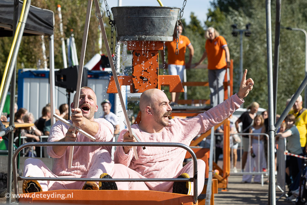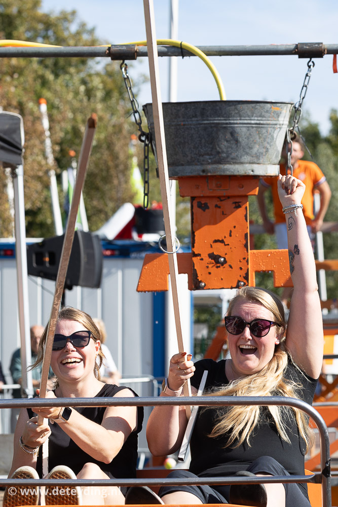 SASSENHEIM, 20 september 2025 – Het tobbetje steken op de najaarsfeesten in Sassenheim had dit jaar meer dan 80 deelnemers. Lisanne en Sofie staken de meeste ringen. Op de tweede plaats eindigden de ‘Zonnige zonners’, gevolgd door Melvin en Daniel. Foto’s Edwin van der Wijngaard.