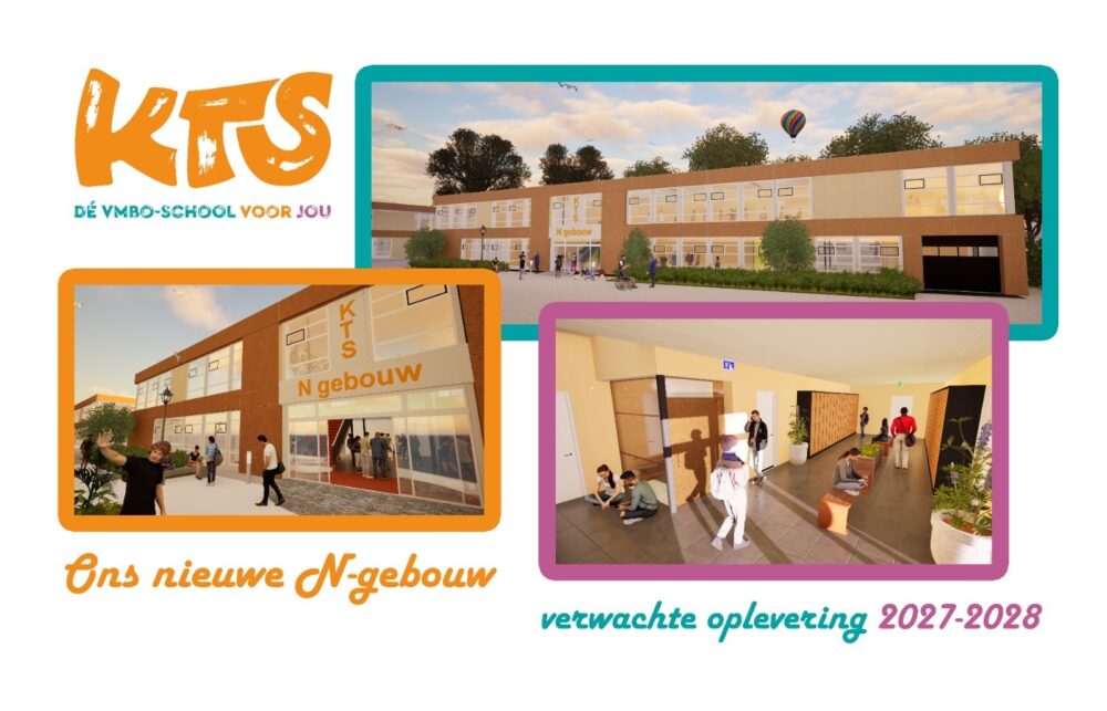 Het N-gebouw is in feite een noodgebouw dat al sinds de jaren negentig op het terrein staat. Het is dus echt aan vervanging door degelijke nieuwbouw toe. In het nieuwe gebouw komen straks op de begange grond drie grote praktijklokalen en op de verdieping tien theorielokalen. De KTS gaf onze fotograaf onderstaande impressie van de nieuwbouw mee, zodat je een idee hebt hoe het eruit gaat zien.