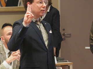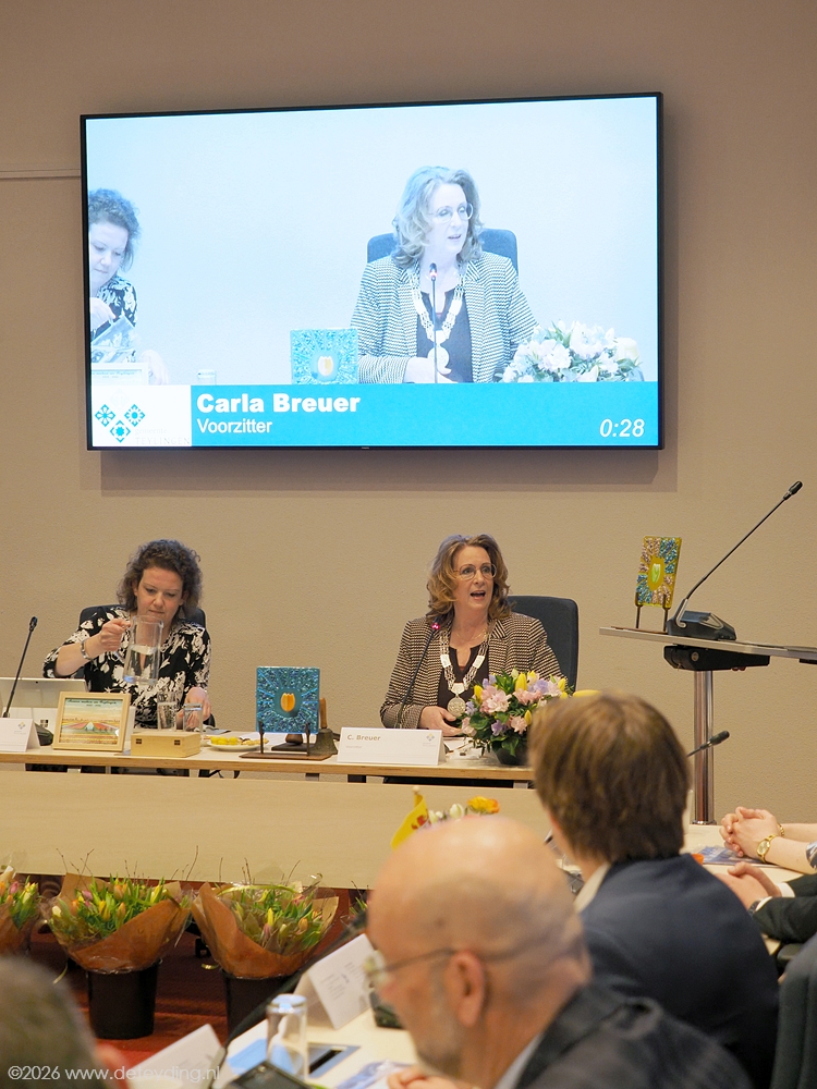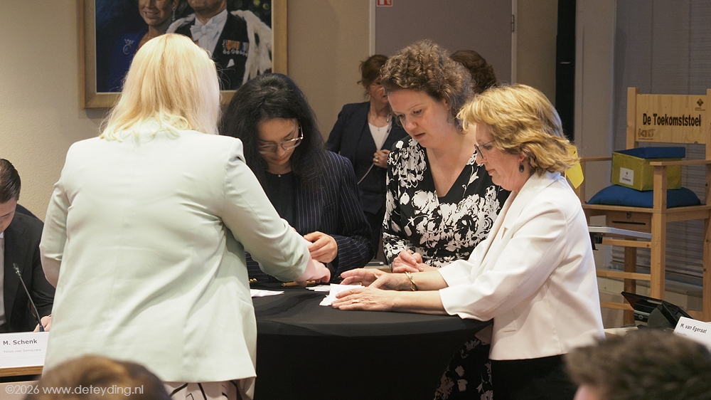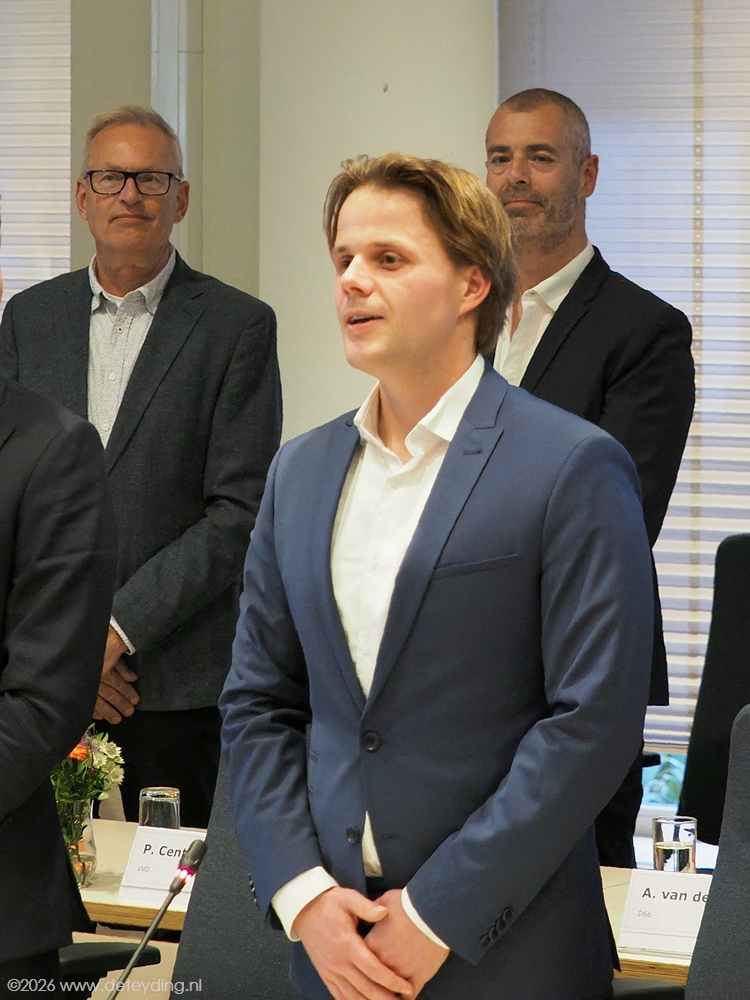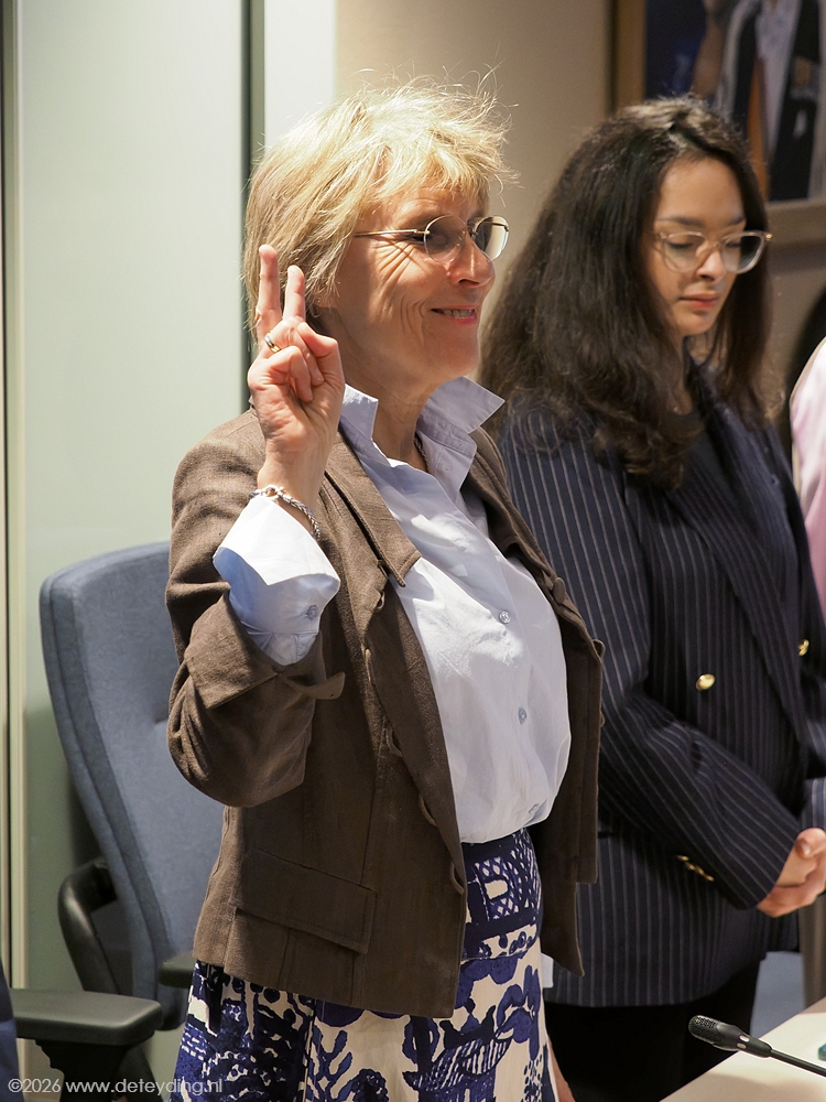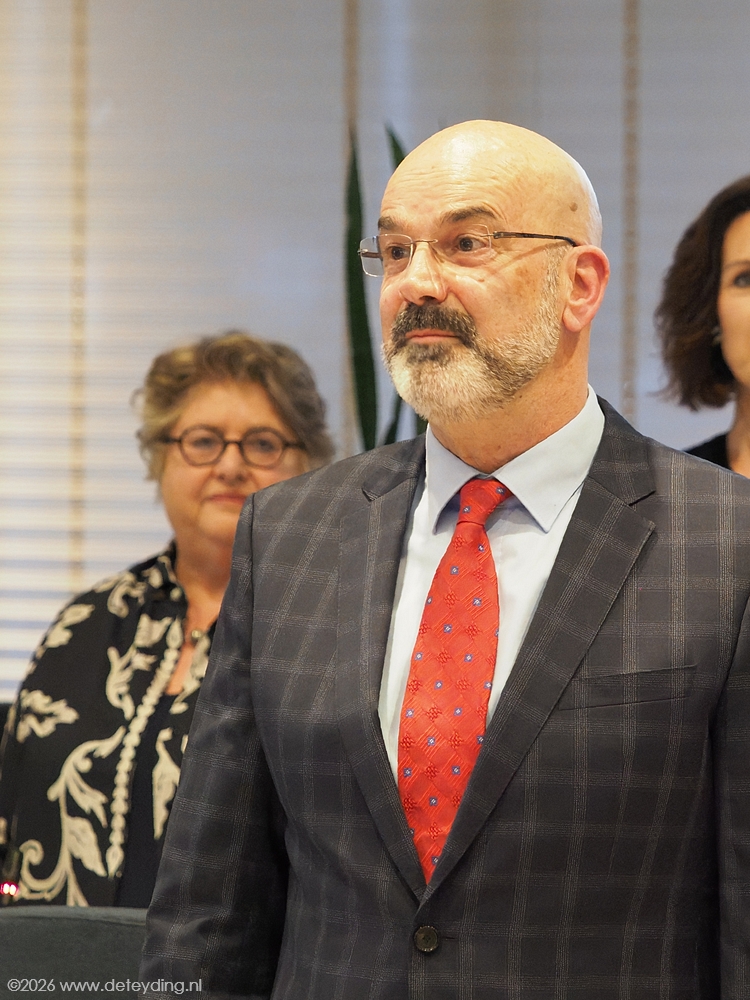 TEYLINGEN, 1 april 2026 – “Zo waarlijk helpe mij God almachtig” of “dat verklaar en beloof ik”. De 25 leden van de nieuwe gemeenteraad spraken vanavond de woorden uit die horen bij de eed of belofte die zij afleggen alvorens met hun raadswerk te kunnen beginnen. Verder werden er onder andere burgerleden benoemd. Ook zij legden de eed of de belofte af. Foto’s Henk Keijzer
