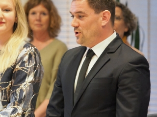 De raadsleden en burgerleden kregen allemaal een bos bloemen en uiteraard felicitaties van collega’s en, na afloop van de vergadering, van alle anderen die in het bestuurscentrum aanwezig waren.