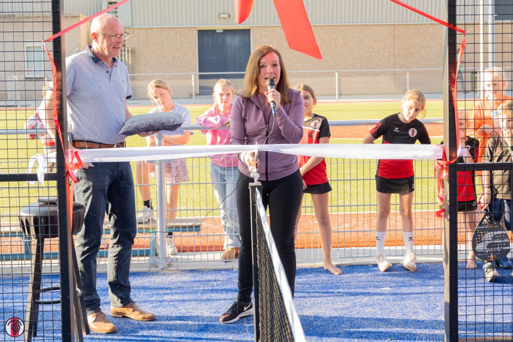 Wethouder Reny Wietsma sprak haar waardering uit voor de manier waarop TOP de padelbanen heeft gerealiseerd en prees de onderliggende filosofie. Zij ziet padel als een mooie aanvulling op de sportmogelijkheden in de gemeente Teylingen.