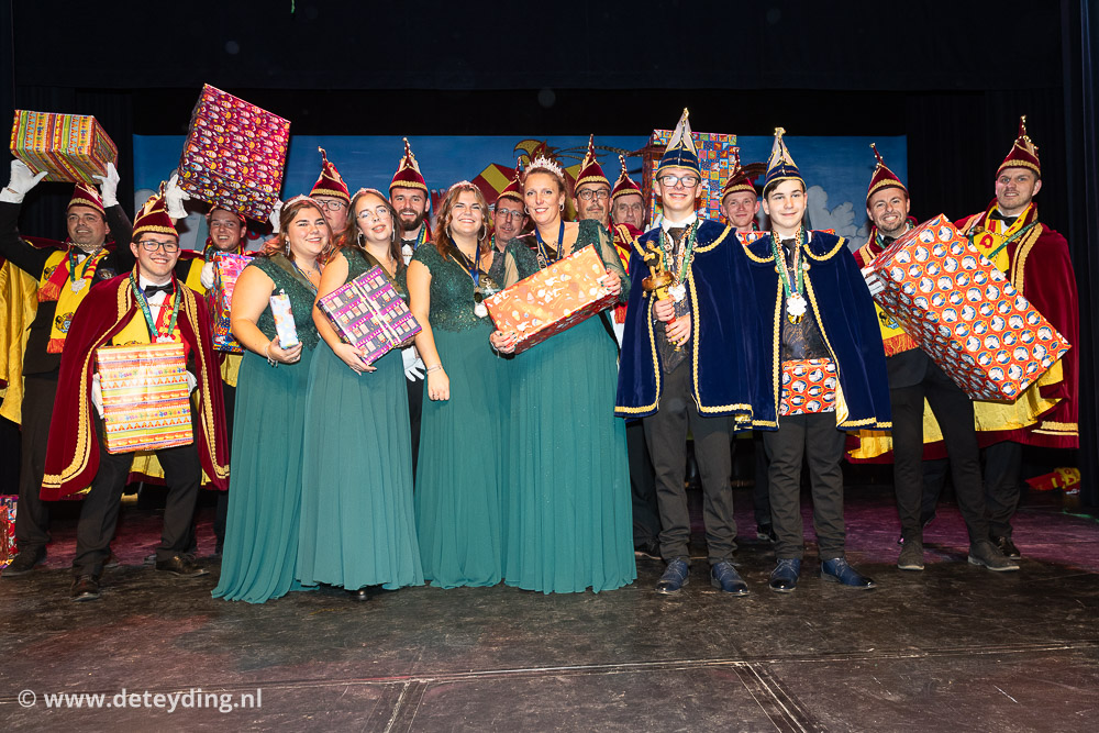 Afgelopen zaterdag 15 november was een bijzondere avond voor Carnavalsvereniging De Saksen: de start van het 51e seizoen. In Residentie ’t Onderdak werd het vanaf 20.00 uur steeds drukker. Veel mensen waren benieuwd wie er dit seizoen prins of prinses zou worden. Om 21.11 uur was het eerst tijd om de 21e jeugdprins(es) bekend te maken. Aangezien Sinterklaas deze dag ook in het land was gekomen hielp hij mee met de bekendmaking. Uiteindelijk kwamen jeugdprins Lars (Molkenboer) en jeugdadjudant Bas (Zeegers) achter een enorme stapel cadeaus tevoorschijn. Hun outfits zien er geweldig uit, met achter op hun capes hun namen. Vol enthousiasme las jeugdprins Lars zijn proclamatie voor en gingen ze voor in de polonaise.