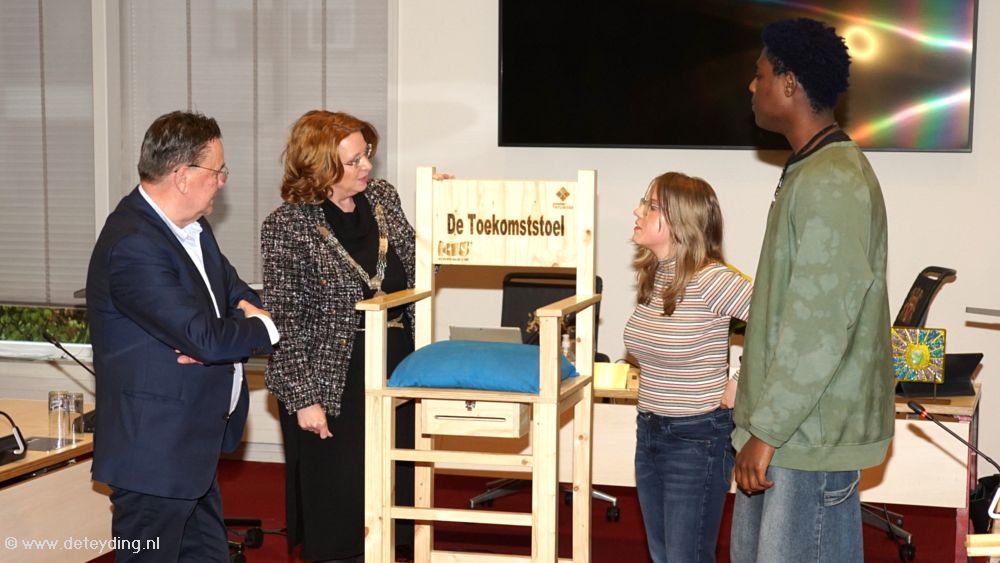 De stoel werd onthuld door burgemeester Breuer, raadslid Van den Nouland en KTS leerlingen Charlène en Robin, die de stoel gemaakt hadden. Door middel van die stoel zijn toekomstige generaties symbolisch aanwezig bij de besluitvorming van de raad. Die wordt er door deze stoel aan herinnerd dat ze die besluiten nemen voor toekomstige generaties.