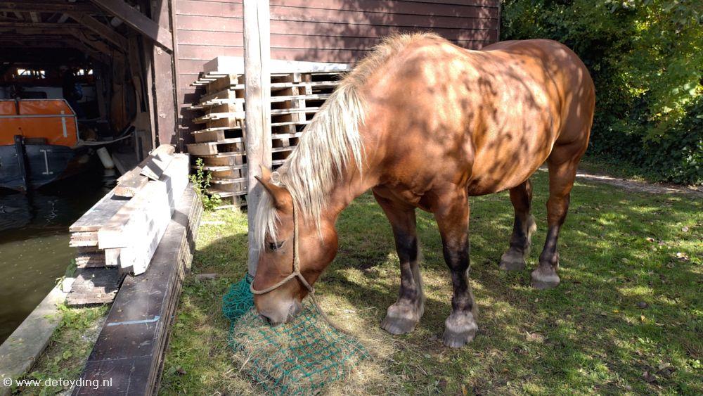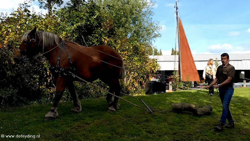 Een paard dat nog lekker stond te lunchen, moest komen opdraven om te helpen met het verslepen van boomstammen die tot planken verzaagd moesten worden. Een jager liet, samen met dit paard, ook zien hoe een trekschuit werd voortgetrokken.