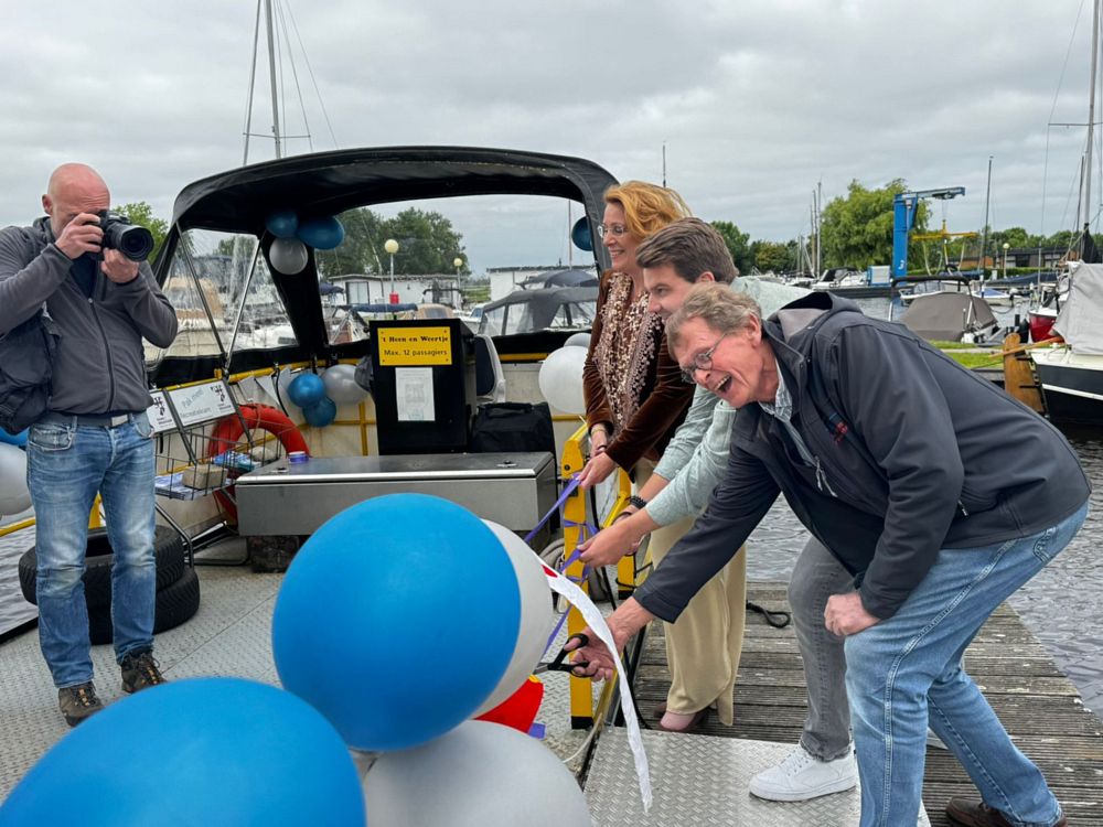 Samen met een van de initiatiefnemers, Eric van der Wansem, knipten zij linten door om de toegang tot het feestelijk versierde veer vrij te maken. Met de komst van dit veer is de recreatieve fietsroute “Rondje Kaag” ook dit jaar weer volledig mogelijk. Vroeger werd het veer commercieel geëxploiteert, maar dat was geen optie meer. Met vrijwilligers lukt het wel. Vorig jaar draaide het veer een succesvolle pilot en werden duizenden passagiers overgezet. Ook dit jaar is het overigens nog een pilot. Het veer, zoals het nu in bedrijf is, is een initiatief van de Stichting Promotie Kaag (SPK). ’t Heen en Weertje, want zo heet de veerboot, zal varen van 15 mei tot en met 15 september, maar in mei en september alleen in de weekenden. Als alles rond komt met de lokale en provinciale overheden en met de pogingen om subsidie te krijgen, zal het veer vanaf volgend jaar ieder seizoen varen.