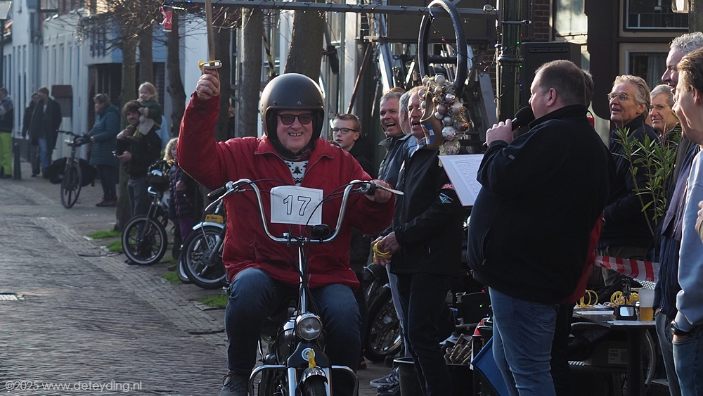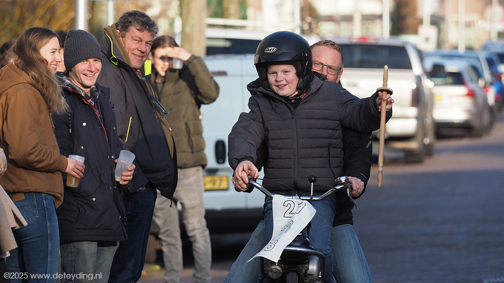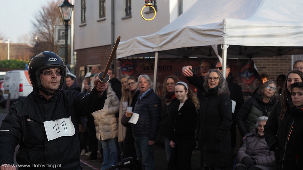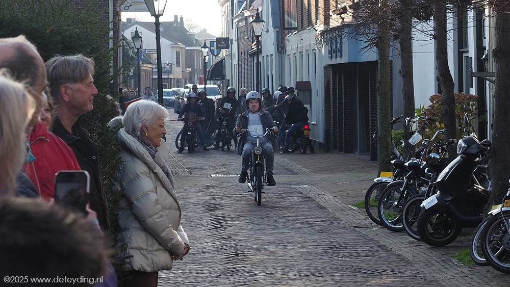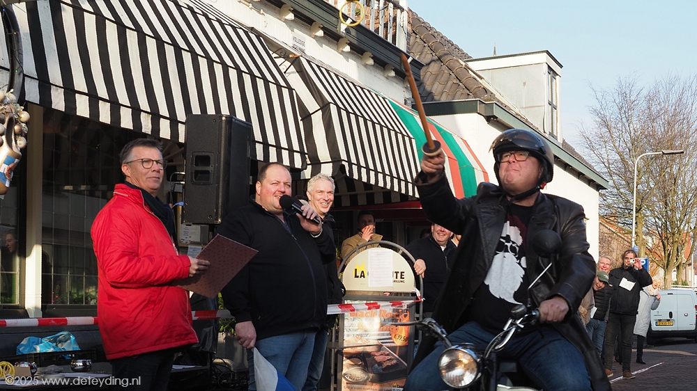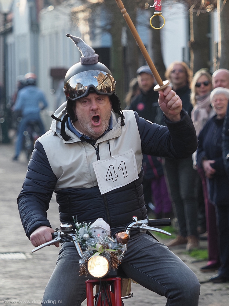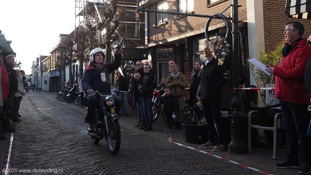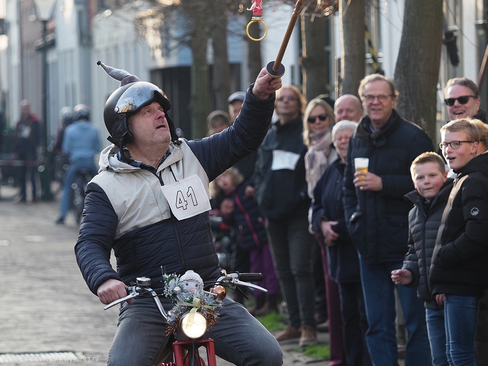 WARMOND, 21 december 2025 – Vanmiddag vond in de Dorpsstraat voor de tweede keer het Warmonds Kampioenschap (WK) ringsteken te brommer plaats. De brommers zijn oldtimers en de wedstrijd gaat vooral om het plezier dat de deelnemers hebben door ring te steken vanaf hun oude, fraai onderhouden vervoermiddel. Foto’s Henk Keijzer
