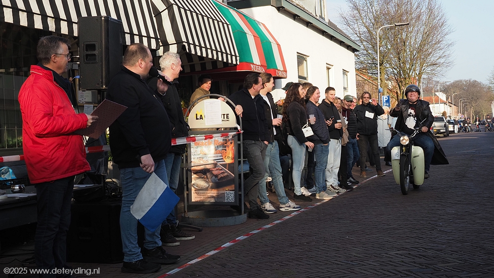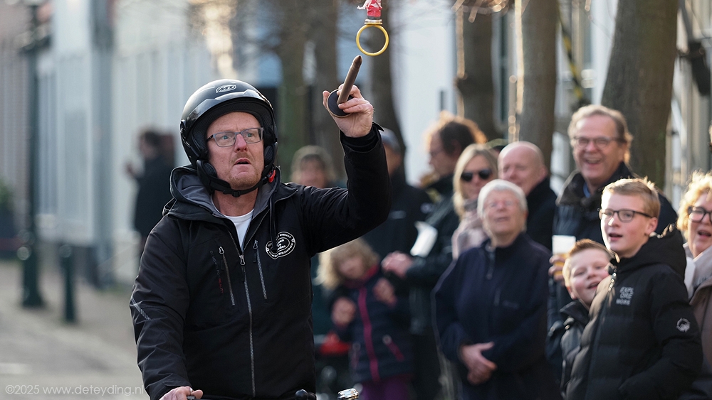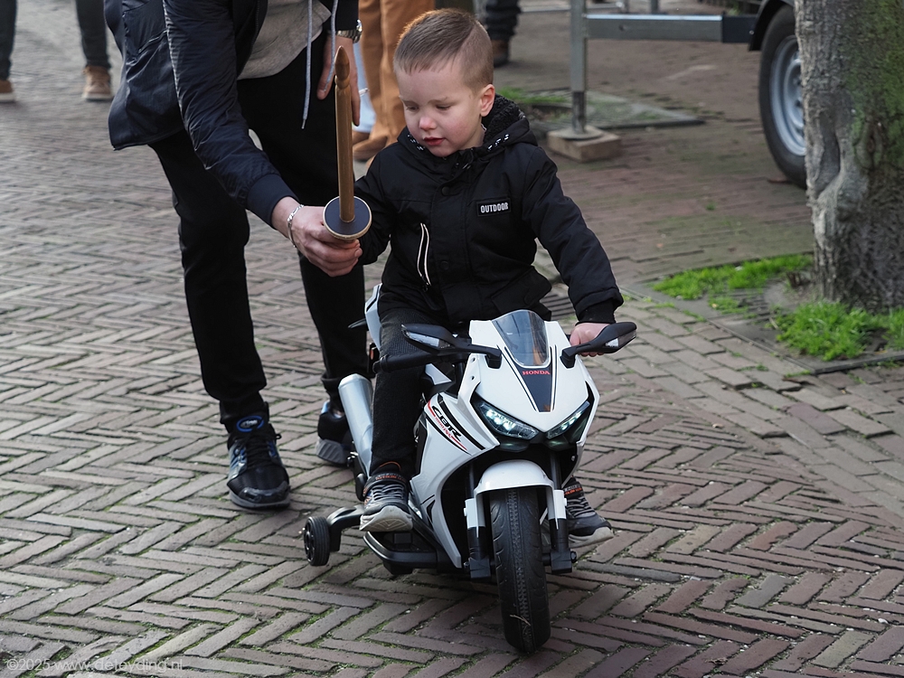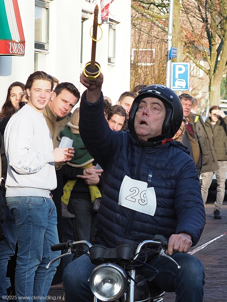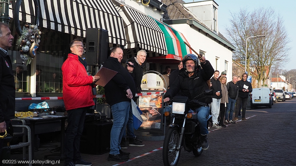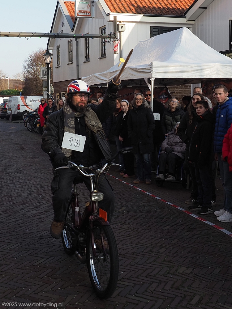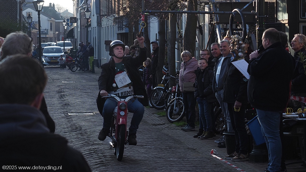 WARMOND, 21 december 2025 – Vanmiddag vond in de Dorpsstraat voor de tweede keer het Warmonds Kampioenschap (WK) ringsteken te brommer plaats. De brommers zijn oldtimers en de wedstrijd gaat vooral om het plezier dat de deelnemers hebben door ring te steken vanaf hun oude, fraai onderhouden vervoermiddel. Foto’s Henk Keijzer
