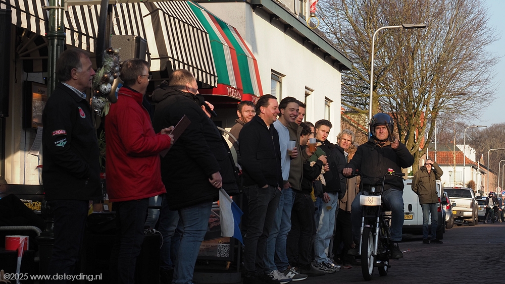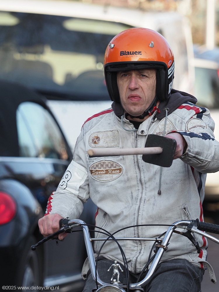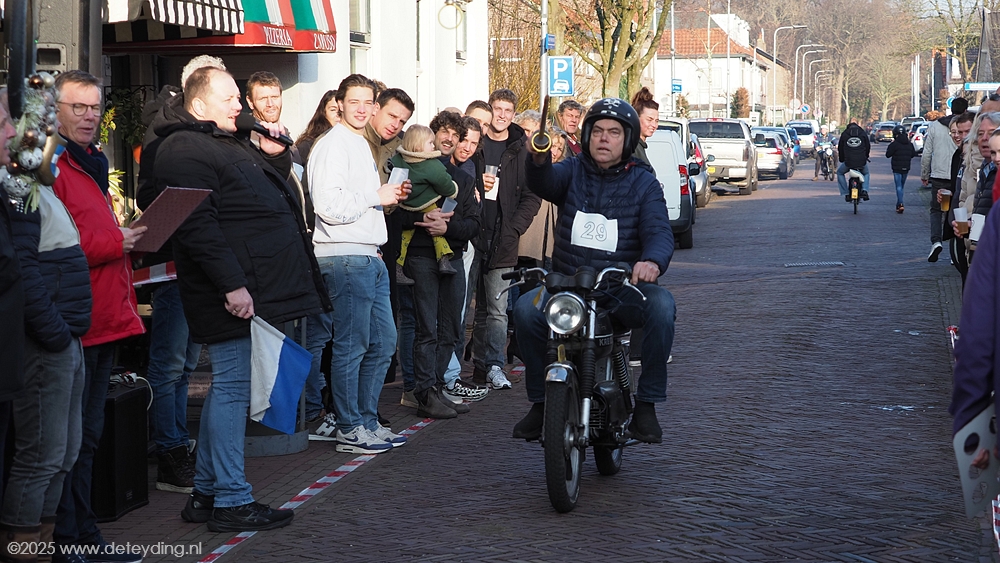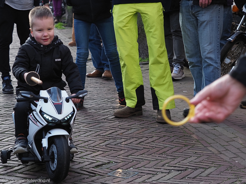 Rond half twee is men zover. Leren helmpje op, leren jas aan en gaan. Pruttelend en hobbelend vanwege de slechte bestrating, wordt toch menig ring gestoken. Dat gaat tot een uur of vier door. Binnen in het restaurant kun je je opwarmen en daar is tegen vieren ook het dweilorkest ex-BTW gearriveerd voor een feestelijke afsluiting van een bijzonder evenement.